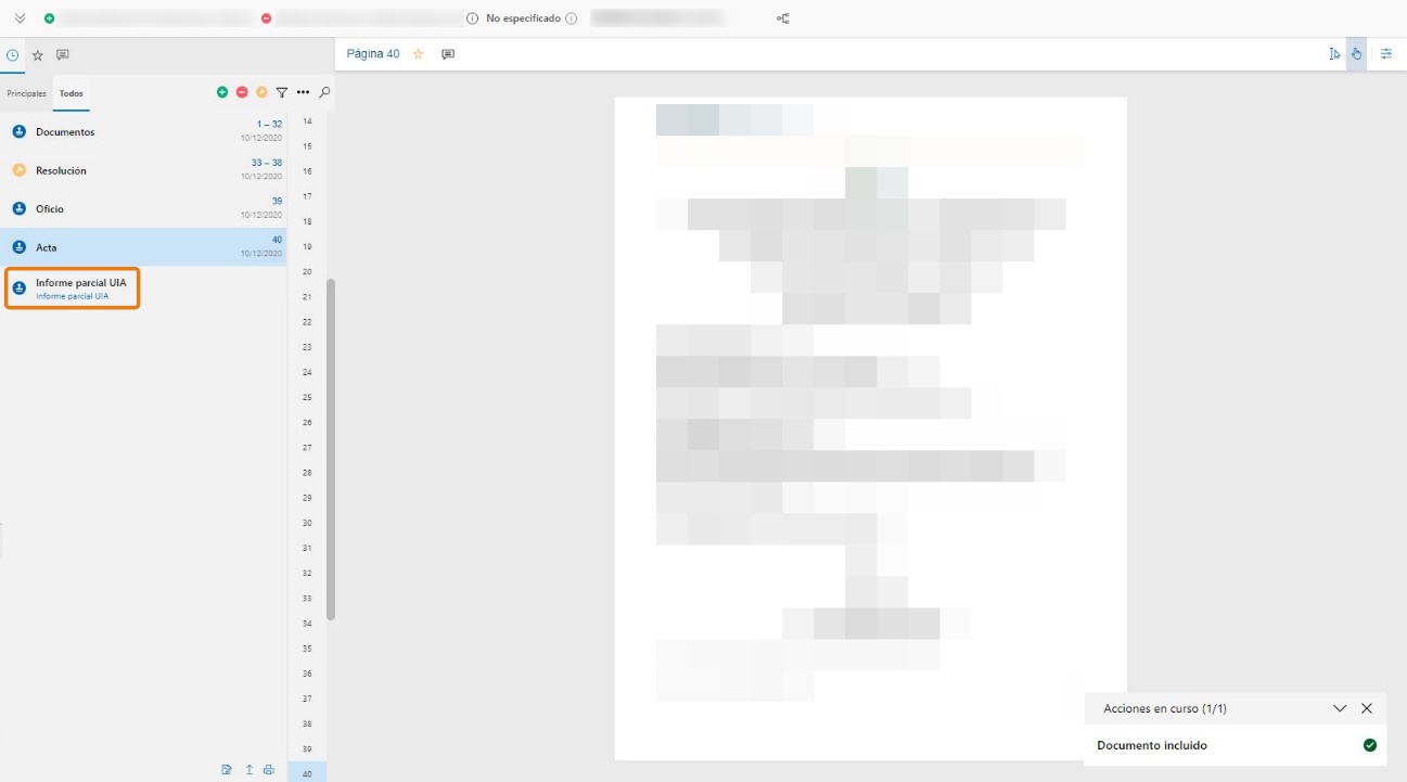 2. Todos los documentos pendientes de incorporación se encuentran en la esquina inferior izquierda del expediente.