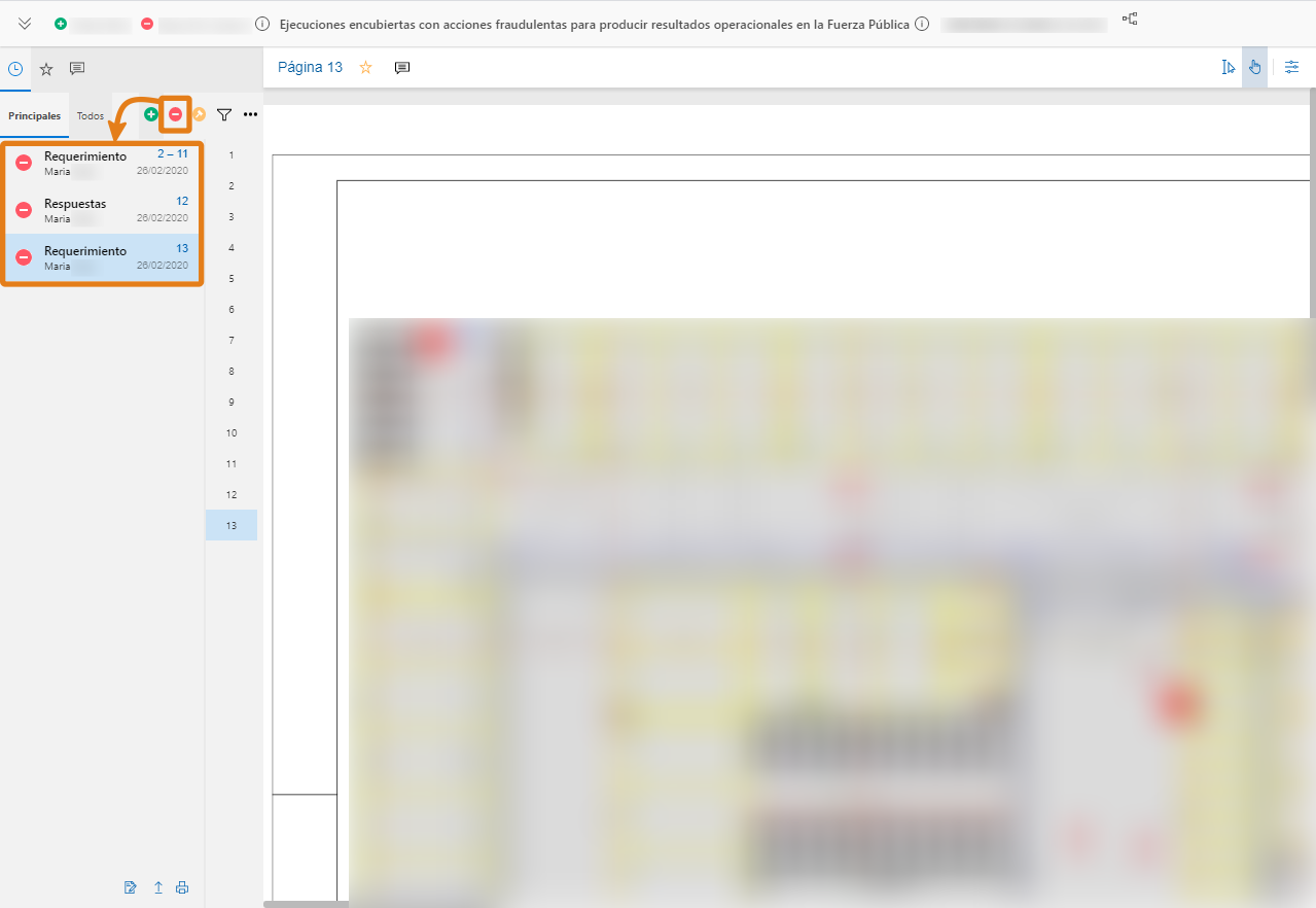 3. Al hacer clic en el botón mencionado, el sistema filtra todos los documentos que están en el expediente que fueron peticionados por la parte pasiva.