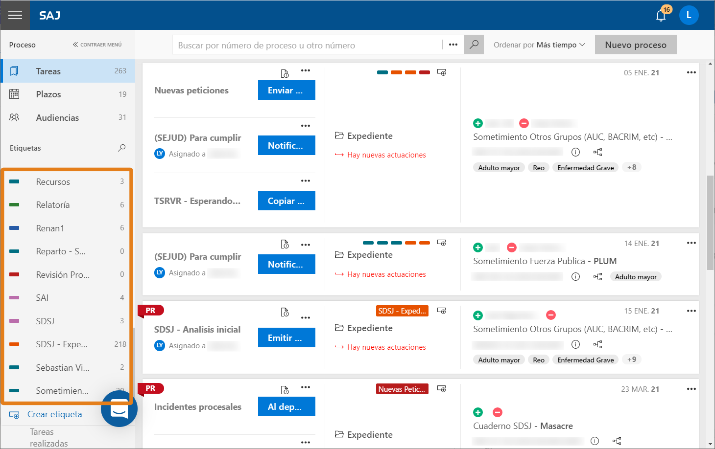 Publicación: 21/09/2020 | Actualización: 22/04/2021Además de facilitar la organización de los procesos en el sistema, las etiquetas permiten localizar más fácilmente todos los procesos vinculados a ella.