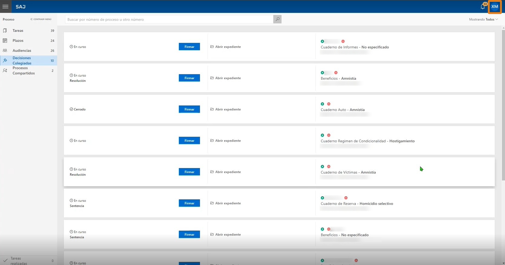 ObservaciónEste procedimiento es idéntico para el magistrado ponente o cualquier otro magistrado de la composición colegiada, con la diferencia de que, para el magistrado ponente, la actividad aparecerá en azul y para los demás en naranja, tal como se ha explicado en el paso anterior.
