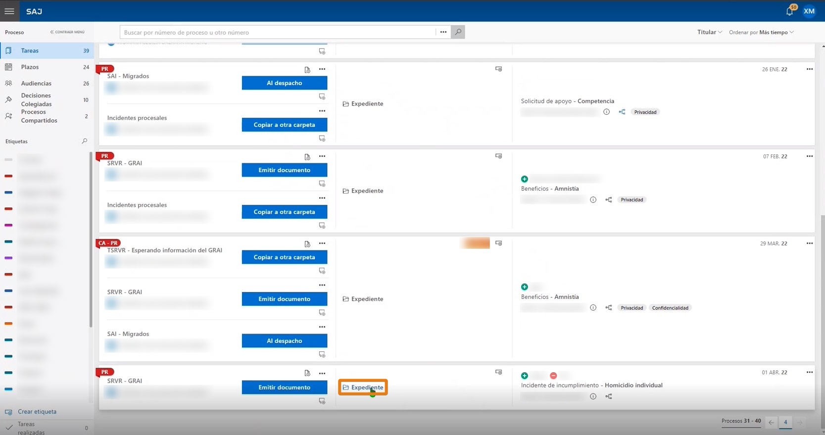 1. Acceda al Panel de Tareas y encuentre el proceso que desea. Enseguida, haga clic en Expediente.